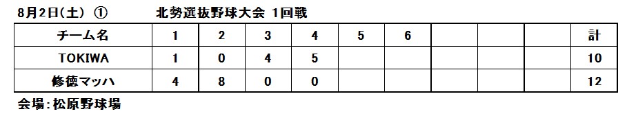 修徳マッハ, 北勢選抜, 負け
